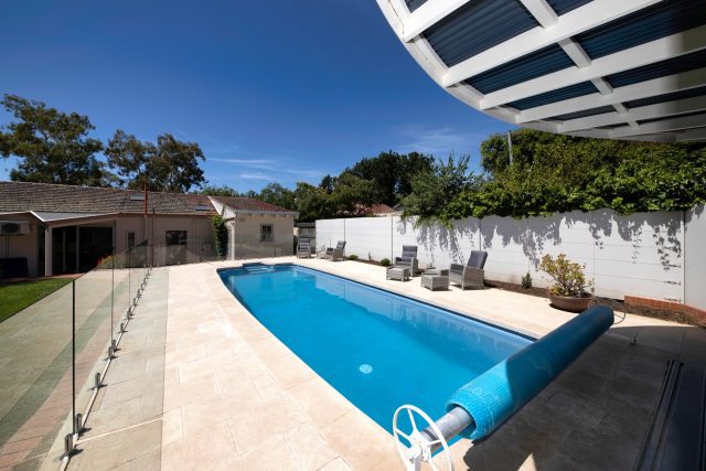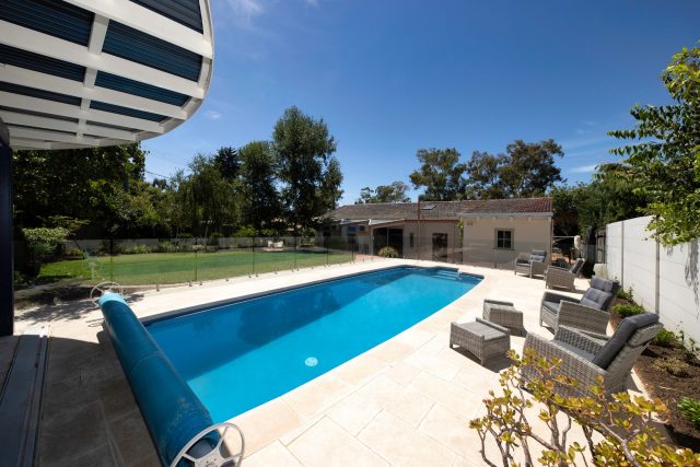 Artisan Exterior Kahvi stone pavers, have given this existing fiberglass pool a complete revamp, making this space inviting for a dip.
